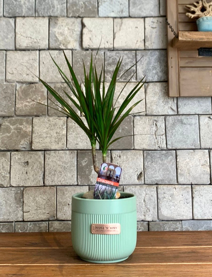 Madagascar Dragon Tree is a houseplant that has elegant long, thin leaves with red edges. The lower leaves gradually fall away to reveal a thin trunk. The Dragon Tree looks good on its own and is also useful for providing height among a group of houseplants.