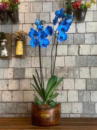 Royal Blossom Moon Orchids | Sculpted Indian Wooden Pot