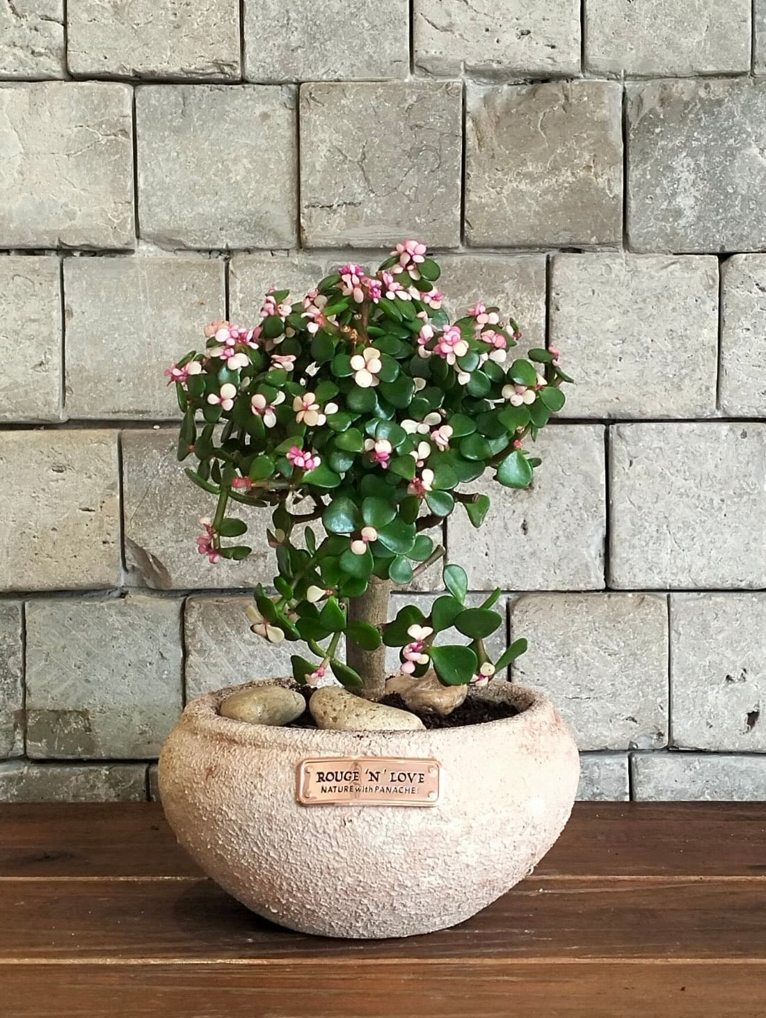 It's the ultimate symbol of prosperity in China. It has flat round leaves, and its compact shape makes it the Asian equivalent of a money tree. This evergreen plant has thick branches and smooth, rounded, fleshy leaves that grow in opposite directions.