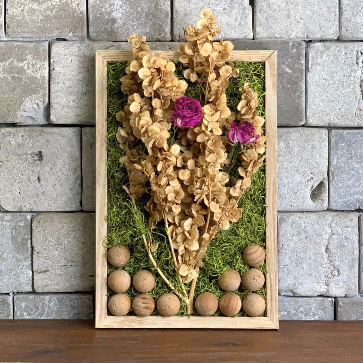 An elegant moss wall art piece featuring preserved botanicals and soft floral accents, designed to bring depth, texture, and natural beauty to any wall. ☘ Dimensions: 29.5 x 19.5cm ☘ Material: Wood Frame