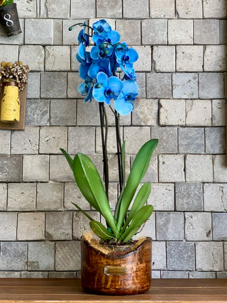 Royal Blossom Moon Orchids | Sculpted Indian Wooden Pot