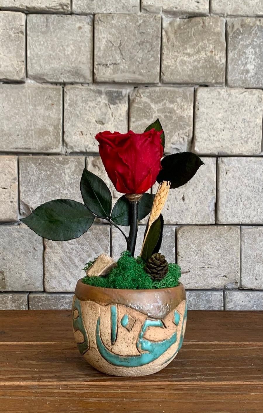 Enchant your space with ROUGE Enchanté, a single, everlasting red rose presented in a handcrafted artisan pot. Every detail is thoughtfully designed, from the lifelike petals of the rose to the exquisite textures and artistry of the pot, making each piece truly one-of-a-kind.