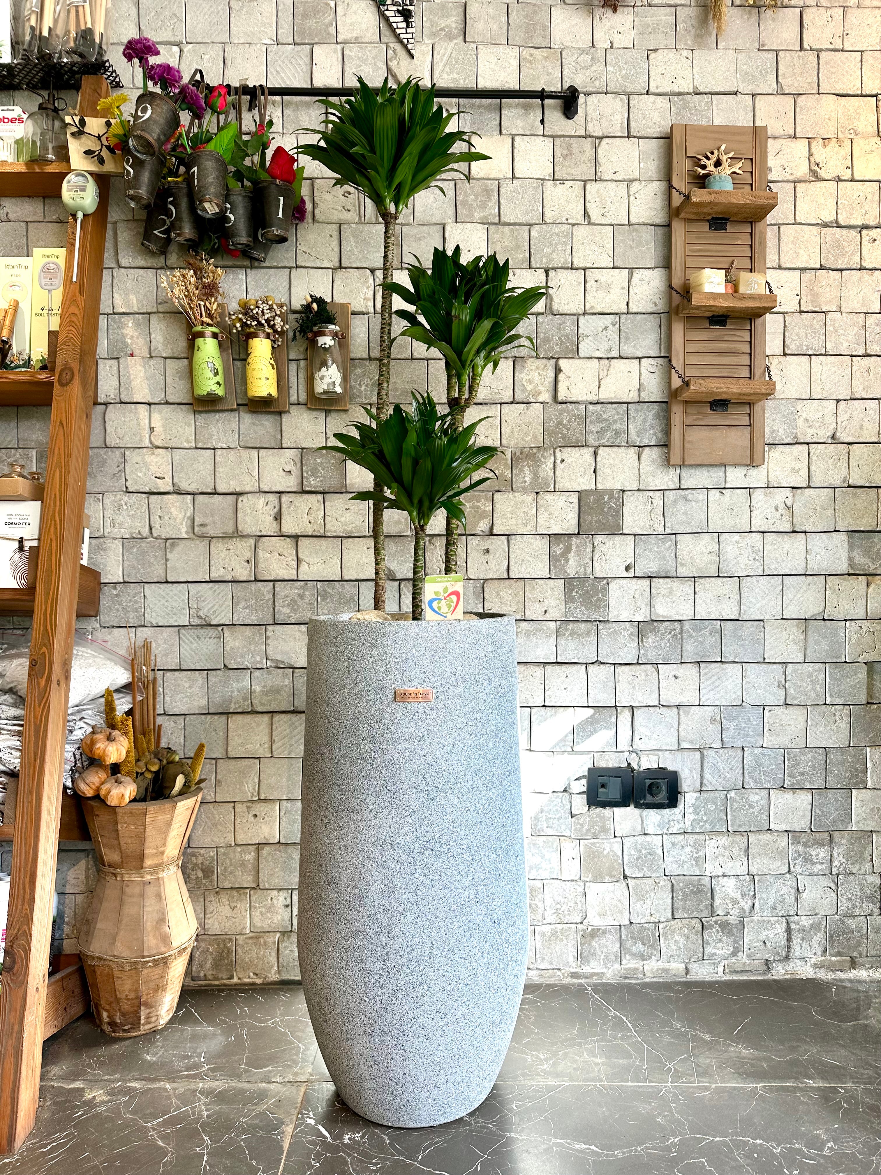 Madagascar Dragon Tree is a houseplant that has elegant long, thin leaves with red edges. The lower leaves gradually fall away to reveal a thin trunk. The Dragon Tree looks good on its own and is also useful for providing height among a group of houseplants.